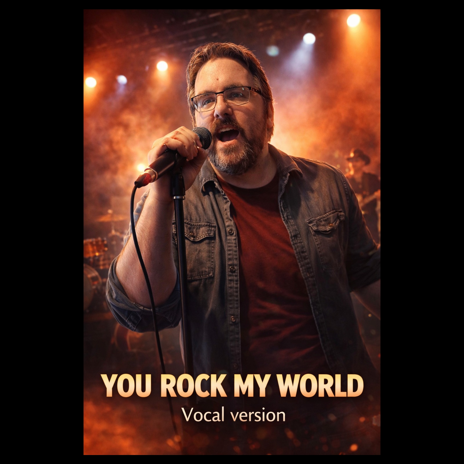 A high-energy, anthemic hard rock track featuring a powerful, soaring gritty male tenor vocal, The song opens with a steady, mid-tempo drum beat and a driving electric guitar riff that follows a classic blues-rock progression in a minor key, The arrangement builds with layered, distorted rhythm guitars and a prominent, punchy bassline, The vocals utilize significant rasp, belting, and melodic shouting, particularly during the climactic chorus, Production is clean but aggressive, with a slight reverb on the vocals and a wide stereo field for the guitars, The structure follows a standard verse-chorus-bridge format, characterized by a rhythmic, stomping feel and a triumphant, emotional full of love, power vocal belts backed up by backing singers and a bass female tenor, Powe Chords and Synth 808 slams support the power of the song, Professional feel, Studio recording and Auto Tune mastering on the whole track