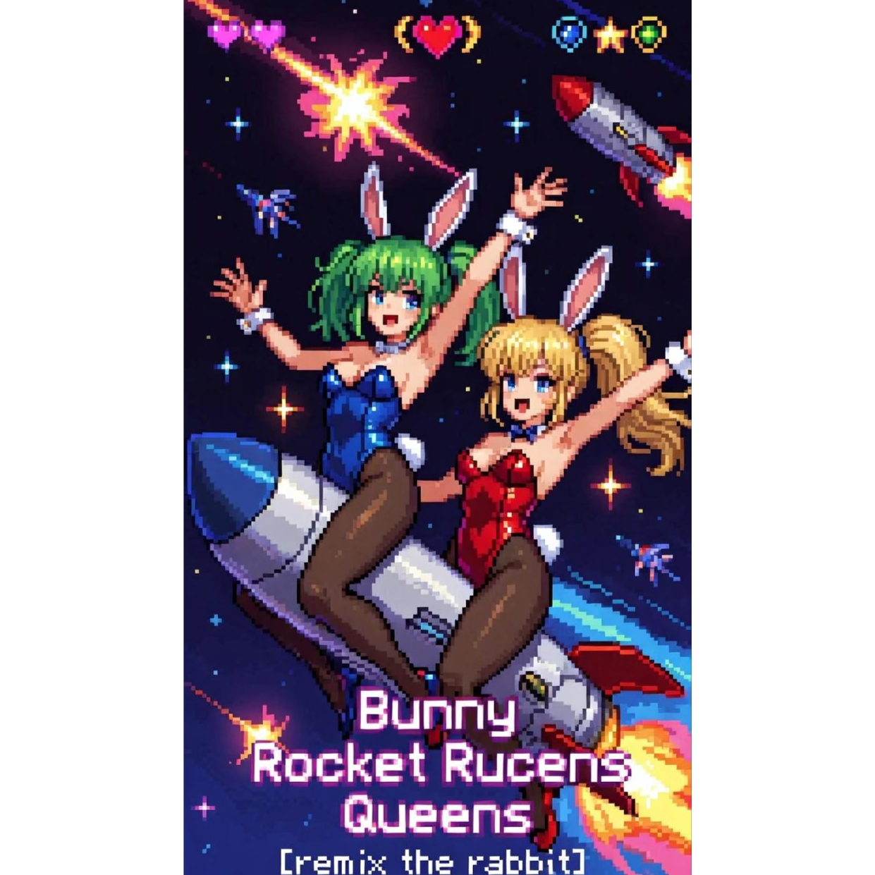 energetic retro chiptune J-pop with 8-bit arcade synths, duet female vocals Hikaru high-pitched playful green-haired bunny persona Akane smooth sultry blonde bunny persona, fast-paced 168 BPM, pixelated sound effects lasers explosions power-ups, catchy hooks massive chorus drops, Konami shooter vibe, upbeat fun sexy parody mood, pristine crystal-clear production, ultra-clean high-fidelity mix, direct instrumental chiptune intro, no melodic vocal start, precise vocal delivery from lyrics, audiophile reference quality, no distortion, Do not change any words inside brackets, high quality throughout, no degradation at the end, consistent mixing, no distortion in final section, studio recording, polished production, high-fidelity, well-balanced mix, pristine audio, Sing exactly as written, ‑male vocals, ‑slow tempo, ‑dark ambient, ‑clean pop, ‑innocent vibe, ‑acoustic guitars, ‑country, ‑jazz, ‑lo-fi chill, ‑bright pads, ‑shy delivery, ‑background noise, ‑static, ‑hiss, ‑clicks, ‑pops, ‑unwanted reverb, ‑breathing noise, ‑intro humming, ‑oh oh ah ah ad-libs, ‑scatting, ‑distortion, ‑muddy mix, ‑low fidelity, ‑tape hiss, ‑vinyl crackle, ‑digital glitches, ‑overly serious tone