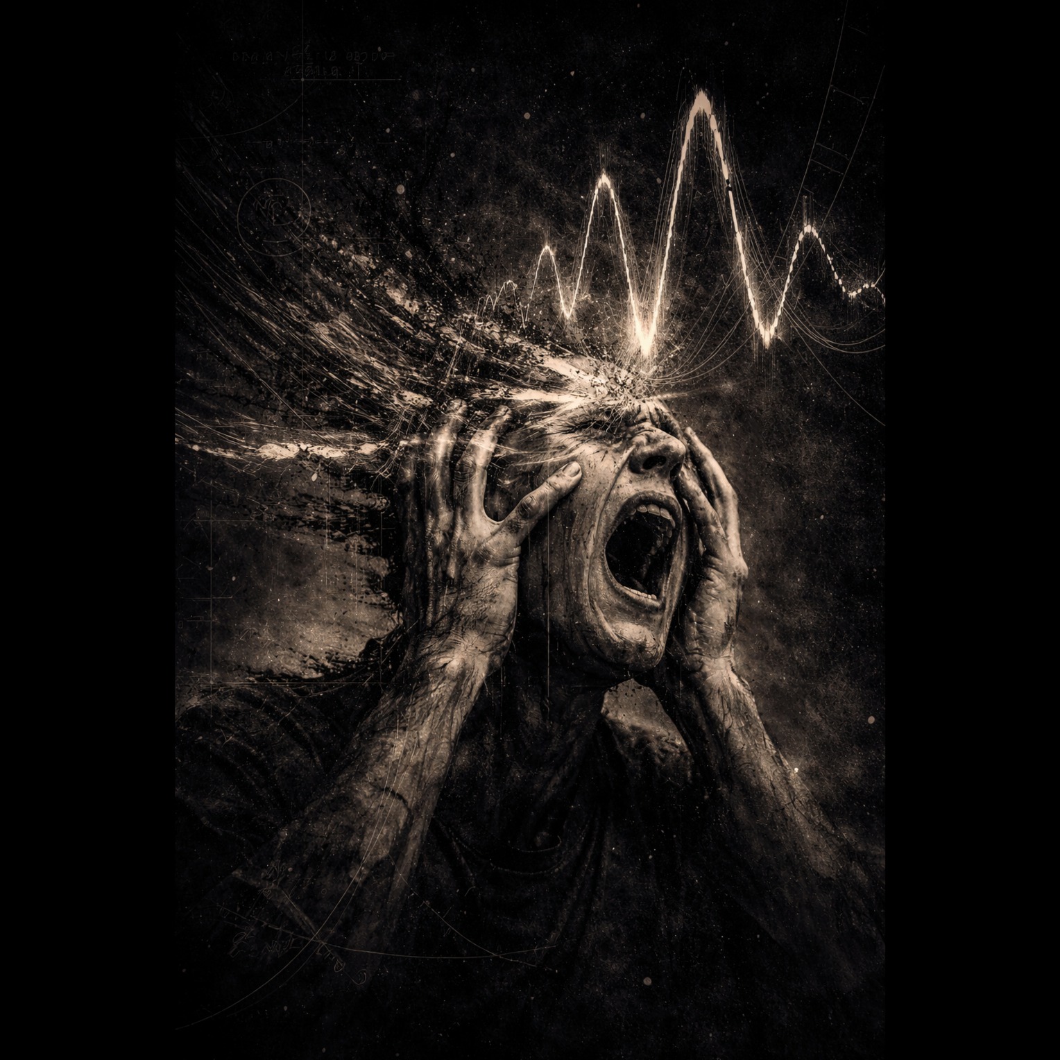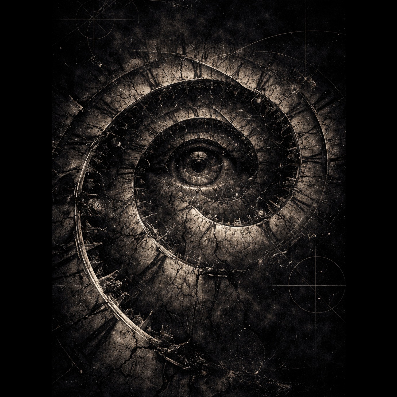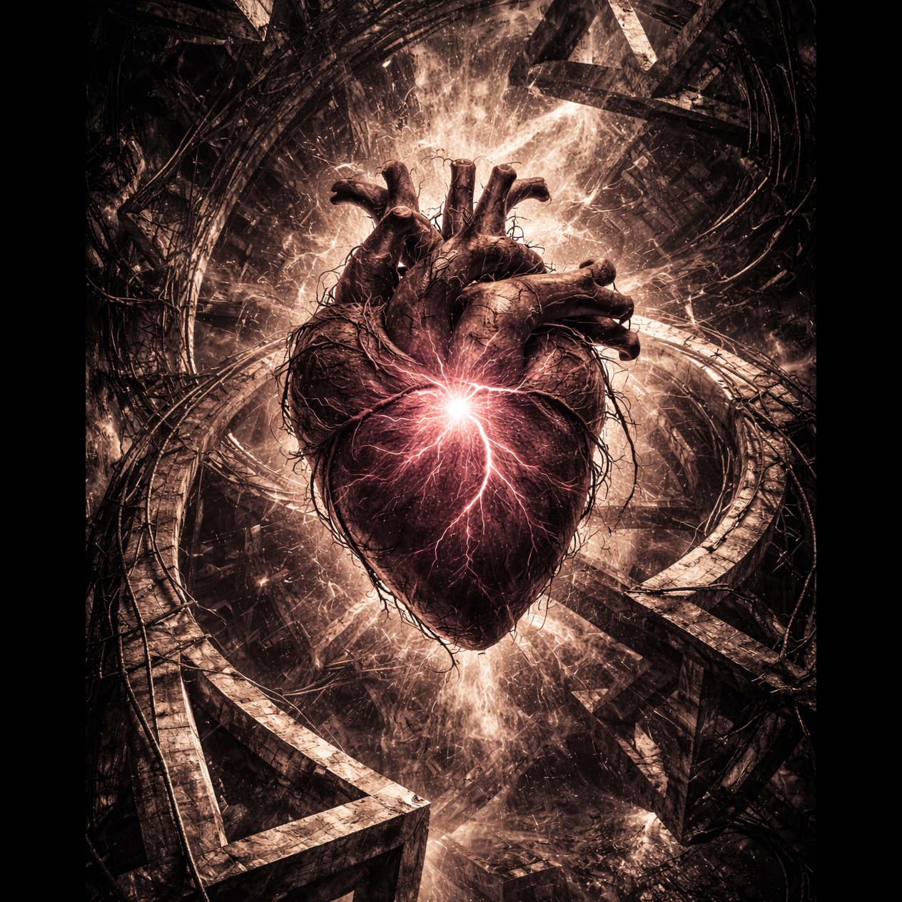 Heavy psychedelic rock / doom ambient / ritual industrial, Heavy groove collapsing gradually, Thick distorted guitars, low-end pressure, deep slow percussion, Structure breaks progressively: missing beats, unstable timing, sound degradation, Vocals: controlled but cracking, French lyrics about structural collapse, inevitability of failure, Atmosphere: heavy, oppressive, slow-motion destruction, Concept album, cohesive sonic identity, dark philosophical theme, emotional mathematics, abstract structure, cinematic continuity