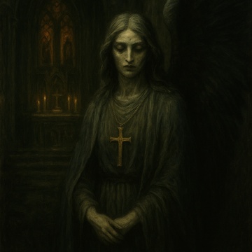 Where holiness fractures, and silence prays. Songs of light undone, wings broken, and sacred echoes fading in dusk.