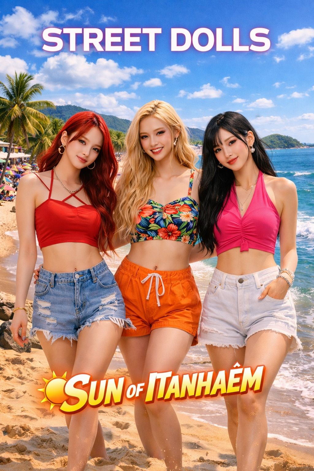 K-Pop Crunch, upbeat K-Pop, high energy pop, punchy trap drums, fast hi-hat rolls, deep 808 bass, sharp synth stabs, bright pluck synths, claps, energetic girl group vocals, catchy pop hook, dancefloor energy