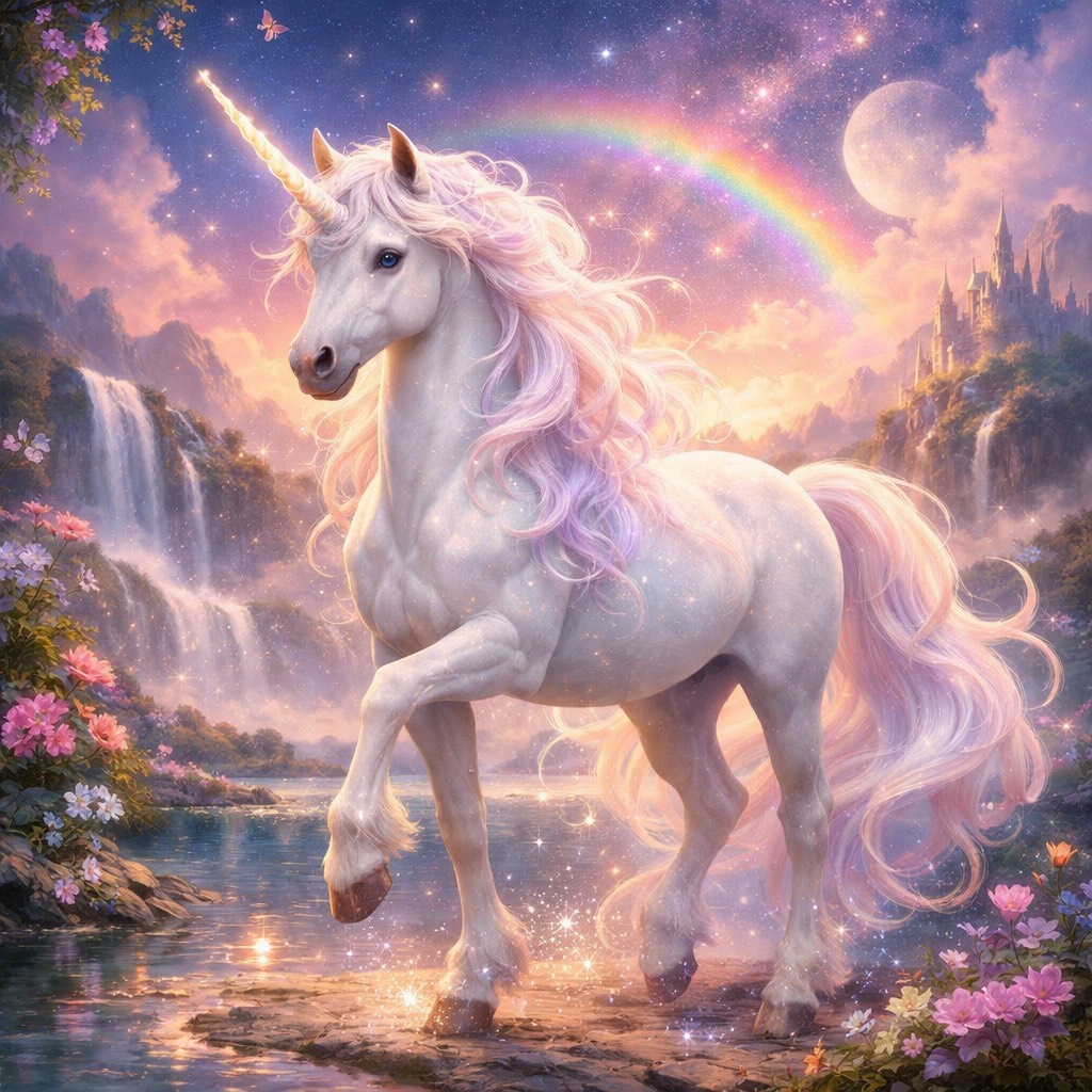 electro-funk | kids-soul | feel-good pop | bright rhodes | clean bass groove | hand claps | spark synth layers | male vocals | childlike harmonies | playful | analog warmth | retro-soul swagger | groovy | colorful | joyful | heartfelt | tape-saturation | syncopated rhythm | story-driven | rainbow unicorn | father-daughter bond | magic feels real | rainbow parade | danceable | summer energy