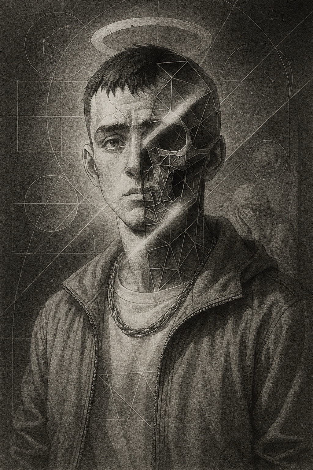 Mode: Futuristic Cool Rap | Tempo: 144 BPM | Tone: confident, analytical swagger | Delivery: crisp, intelligent, unhurried yet fast | Flow: conversational precision; syllables snap like polished gears | Voice timbre: warm midrange with tight consonant control | No melody, no chant, no robo-filtering | Emotional energy: self-assured calm under impossible speed | Texture: bright snare click, sub glide bass, breathing space between bars | Overall feel: luxury chaos — clean edges in violent motion
