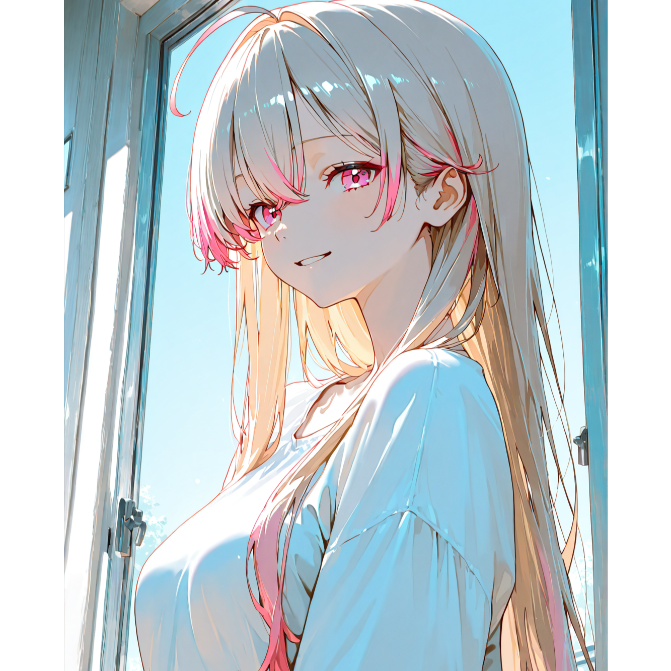 shimmering layered synths (saw+square), sidechain-pumped pads, light orchestral strings for prism-like shine, wide stereo leads, KEY: <<<G MAJOR>>> (stay in major; no mode shift to minor), clean and powerful POP mix (present vocals, controlled low-end, glossy highs), Uplifting and cinematic arrangement, BIG HOOK and memorable topline, kawaii energy, 3-vocal ensemble with ALTERNATING SOLOS in verses, UNISON + FULL HARMONY in choruses, [Vocal Styles:Clear, Female Anime voice]