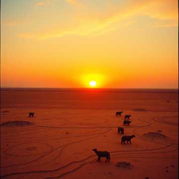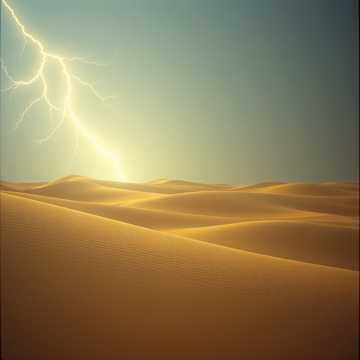 windswept and lonely; the tension builds with the power of an approaching sandstorm, sitar, instrumental, viola, featuring lightning strikes and swirling sands, kettle drums; evocative of a desolate desert, dramatic; contrabass, film score