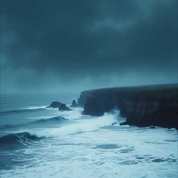phrygian mode with thunder and wind sound effects; male vocals; intense strings, and crashing wave samples create a sense of relentless danger and icy despair, cinematic, dark, theme, eerie choirs, deep percussion
