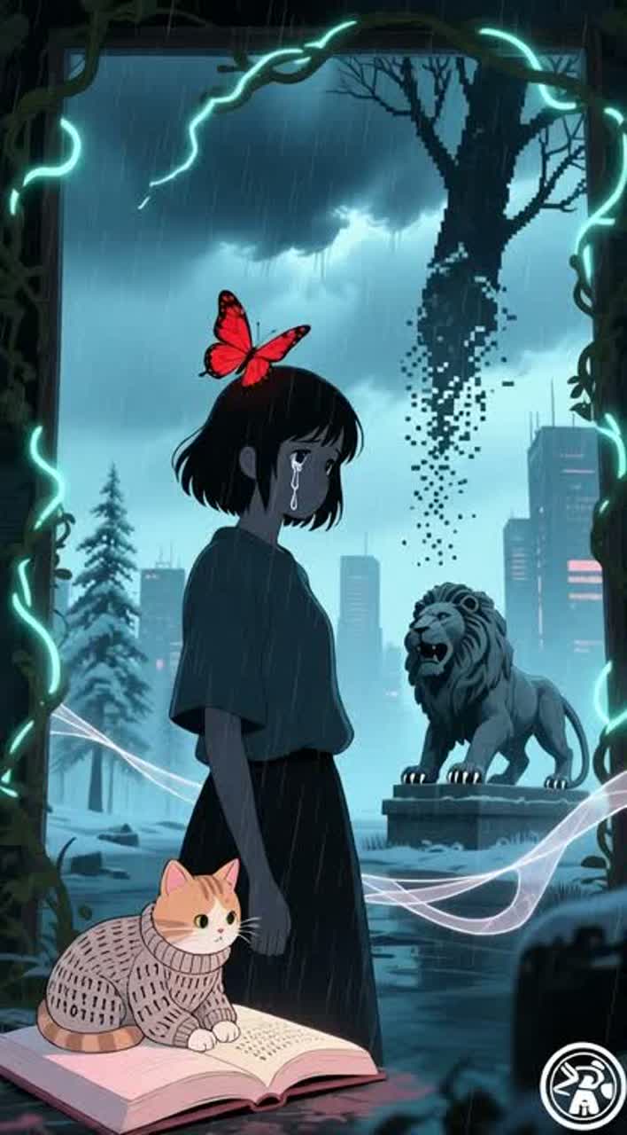 A dark trip-hop track opens with slow, heavy breakbeats textured by dusty vinyl crackle and an intense, pulsing sub-bass, Minor-key Rhodes or mellotron chords create a moody foundation, while reverb-soaked guitar licks weave in and out, Sparse strings or analog synth swells add tension, Intimate, emotive female vocals layer above, occasionally disrupted by lo-fi samples, scratches, and subtle tape effects, forming an atmospheric, cinematic, and degraded sonic tapestry