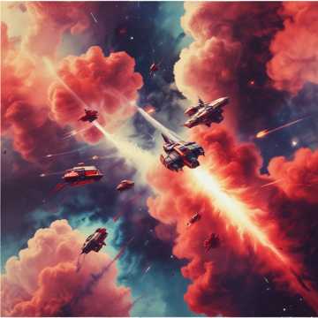n epic SCifi theme with horns and drums, of a space battle with indivudal battles
