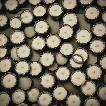An epic scifi military heme with horns and drums, and bass droning in d minor