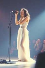 Style: slow 80-90 BPM industrial beats, heavy sub-bass, phasing arpeggios, metallic trident percussion, distant harp echoes, cathedral reverb, subtle vocoder on chorus, Mood: dark, passionate, awakened, “in control” confidence, Include Latin invocation whispers (“Gia Seg”, “Ti dename du sol”) in the background, Make her sing with soul and attitude—like a gothic Pop Singer reborn in white chrome