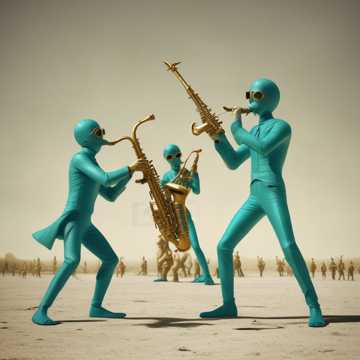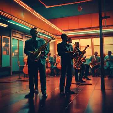 drums jazz, trumpet 6, trombone 6, saxphone 6, piano, double bass, acoustic guitar, big band