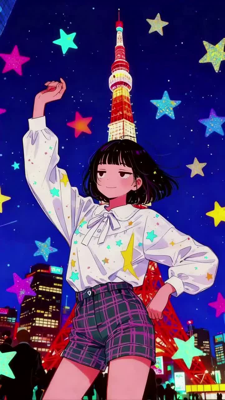 The anime song erupts with glitchy fills, bold synth leads, punchy sidechained bass, and relentless arps, Verses are playful and cool, giving way to explosive, battle-charged choruses packed with distorted synths, fierce vocal chops, and sharp drops, Emotional, triumphant chords back a dynamic young female vocal—soft verses shifting to hyped shouts, The bridge strips to minimal digital textures, then surges into a heroic, densely layered hyper-pop chorus driven by dramatic fills