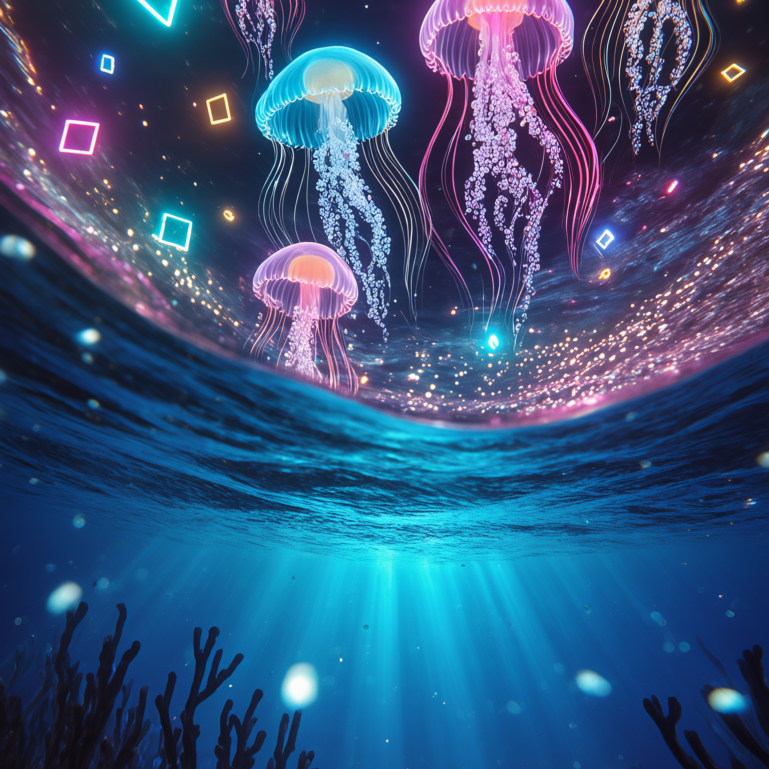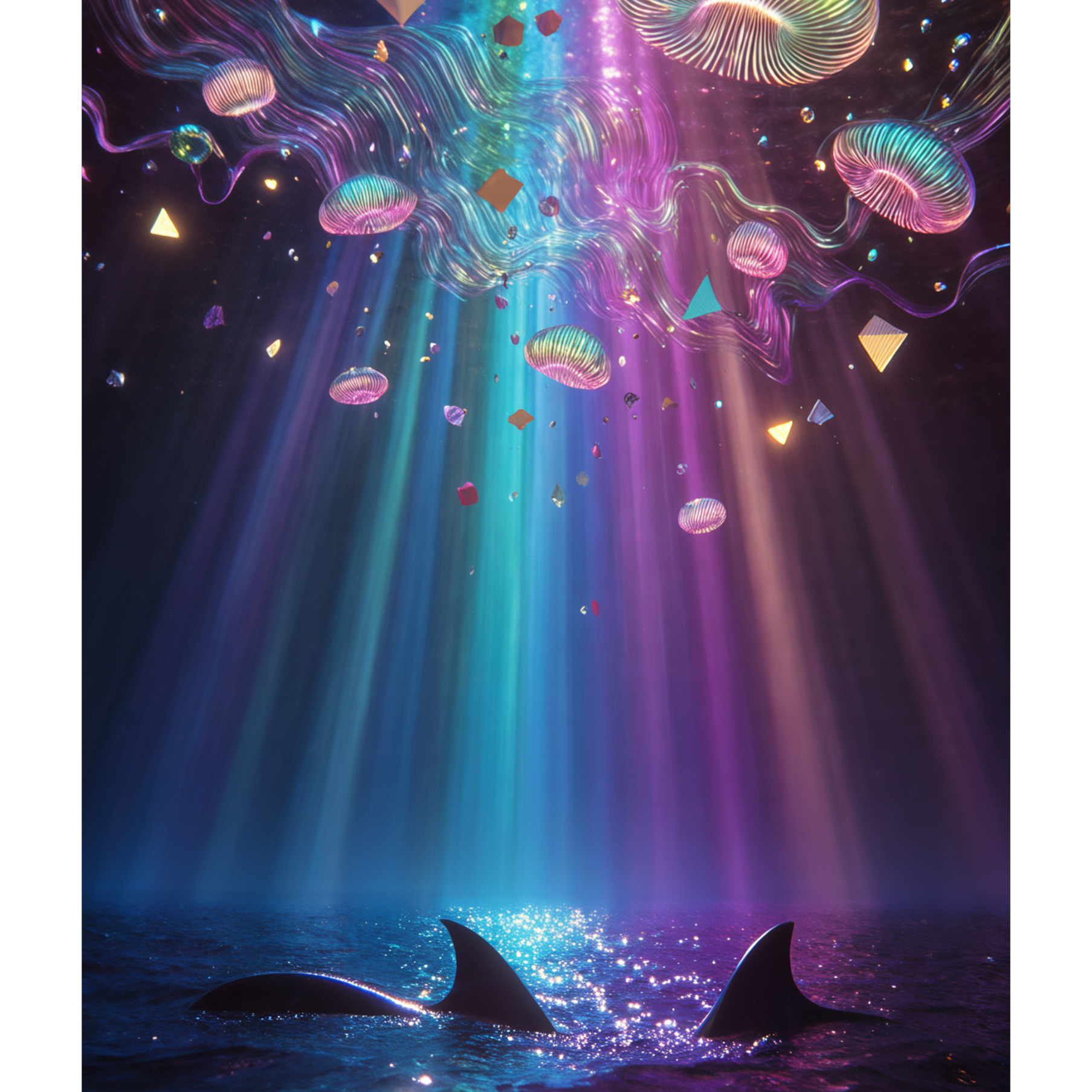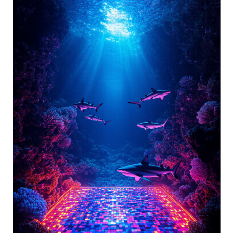 Cinematic suspense meets retro disco, Starts with a minimal, eerie underwater intro inspired by Jaws, then shifts into a groovy, danceable rhythm, Emotional build-up toward a dramatic orchestral finale, Instruments: low strings, funky bass, brass, shimmering synths, ambient textures, orchestral percussion, Mood: ominous, energetic, climactic, Structure: sudden tempo shift after intro, recurring eerie motif, uplifting ending