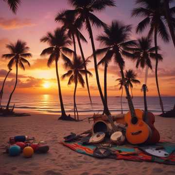 Smooth Soul R&B combined with Chillwave Funk Pop, Upbeat energy and relaxing vibe, Ocean beach setting, many percussions