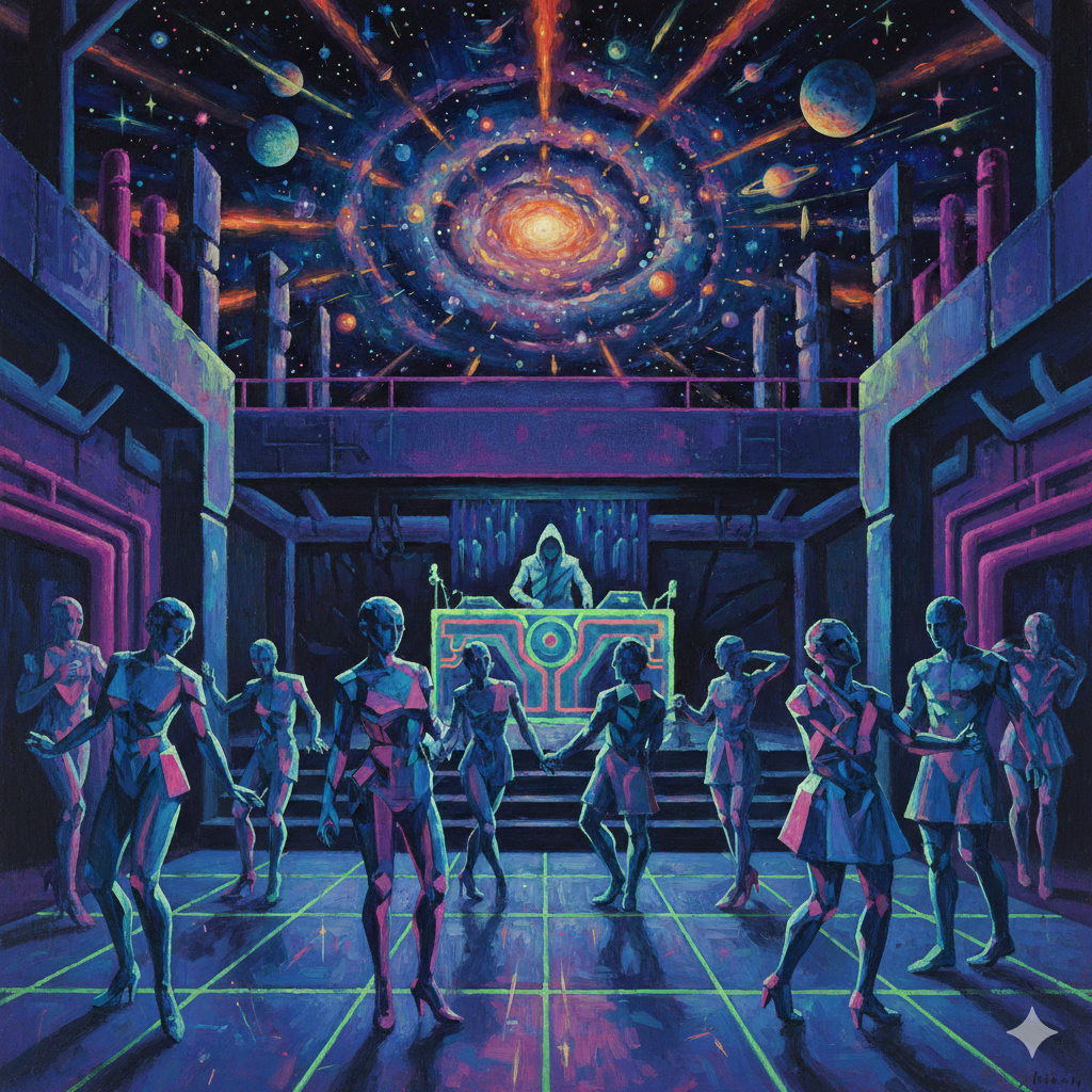 Acid techno, Detroit techno, Dub Techno, dark atmosphere, 303 acid bassline, deep dub delays, industrial night vibes, Male rap voice, deep, dark, intense, rhythmic delivery, Chorus female voice, psychedelic, hypnotic, airy effects, cosmic feeling, BPM 138–145, driving kick, acid groove, underground rave energy