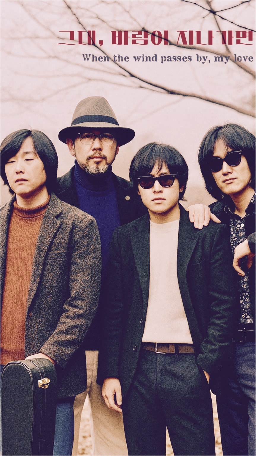Korean psychedelic folk rock, early 1970s Seoul underground sound, fuzzed psychedelic guitar leads this tune, husky tenor male vocal, moderato tempo around 95 BPM, lo-fi warm analog tape saturation like an America Garage Rock Production, live studio session feel, electric guitar with soft fuzz and light tremolo, sustained reverb, tube amp warmth, hollow-body bass with round tone, minimal drum kit with brush snare and open hi-hat, gentle organ pad in background, occasional bamboo flute accents, emotional male vocal in Korean, half-spoken phrasing and natural breath noise, wistful and sincere tone, subtle echo chamber reverb as if recorded in an old radio station, melody flows like a blues hymn, comforting atmosphere, mixing retains air and hiss, no heavy compression, mono-leaning image with depth in room ambience, natural dynamic range, bridge section builds slightly with sustained guitar feedback and soft vocal harmony, ending fades like wind passing through trees, nostalgic, pre-K-pop