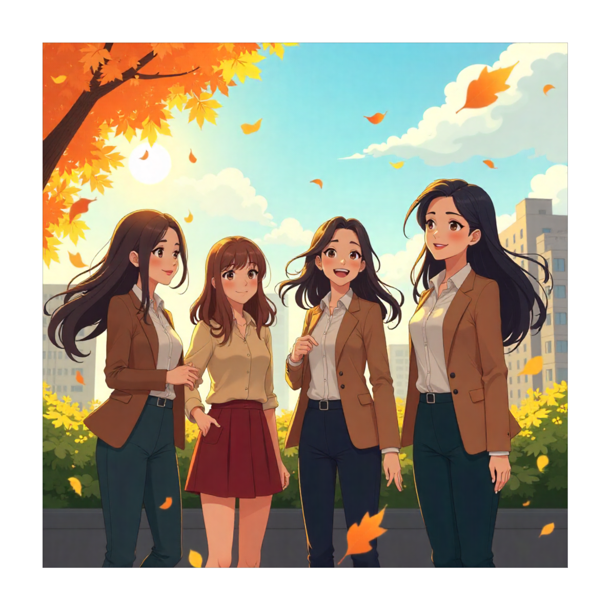 Verse 1–2: calm and intimate, focus on voice and guitar, Chorus: add light percussion and strings to open emotion, Bridge: a moment of reflection, soft background chorus or humming, Final Chorus: full yet gentle, conveying peace and unity with nature, Keywords: autumn, falling leaves, return, unity, peace, earth, nature, reflection, love, harmony, classical, 2030's, yoga