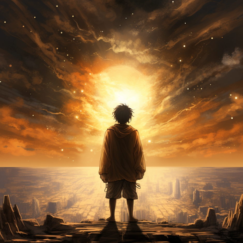 This cinematic world music track fuses symphonic rock and anime battle theme flair, It starts with ambient wind, bamboo flute, and pipa atop deep synth pads, Orchestral strings and world percussion (taiko, djembe, hand drums) layer in, joined by airy female vocals in Chinese, A majestic chorus blooms with choral voices, sweeping strings, distorted electric guitar, epic rock drums, and Celtic touches—tin whistle, bagpipes, violin—evoking heroism and adventure, Subtle nature effects accent the soaring artistry, The song climaxes with energetic rock, bold folk leads, anime-inspired battle motifs, then gently settles into a tranquil outro