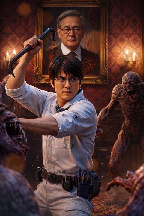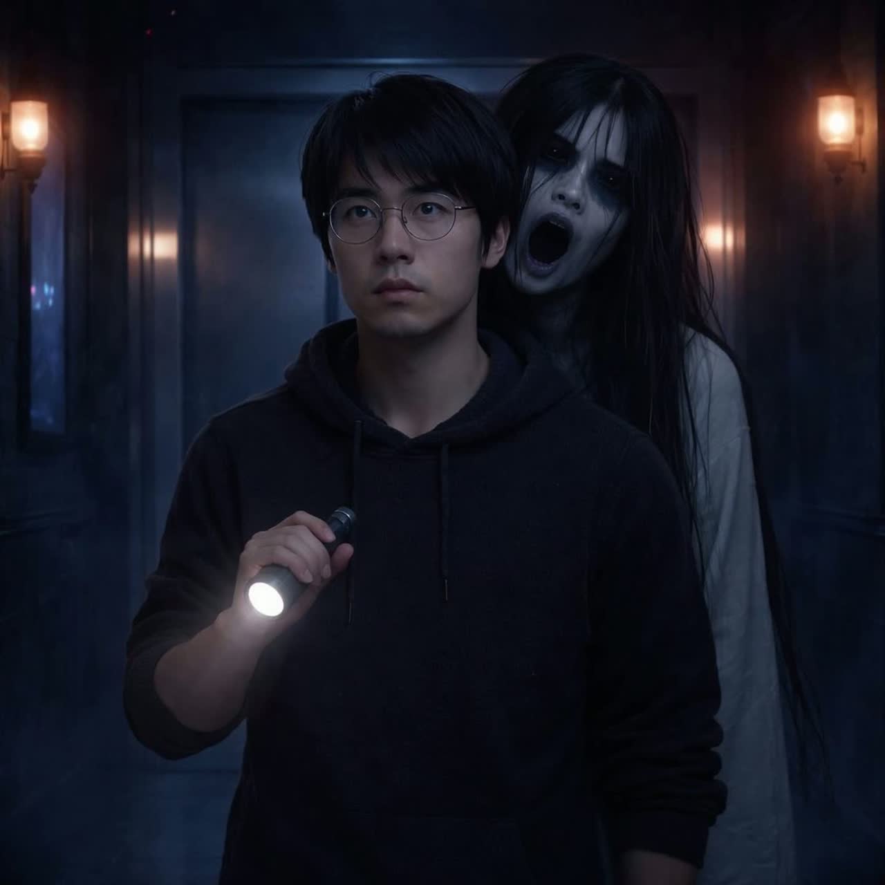 cyberpunk, horror, haunting, eerie, koto, gothic, horror sfx, minor melody, glitches, action, professional, groove, calm, rhythmic, slow tempo, slow, male bass vocals, male low voice vocals, male darth vader voice, Japanese female chorus vocals, high quality, masterpiece