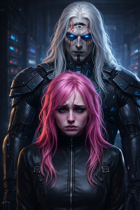 cyberpunk, techno, sci-fi, cyberpunk, minor melody, heroic melody, darkwave, glitches, action, professional, groove, calm, rhythmic, growl vocals, brutal male growl vocals, male bass growl vocals, male low voice growl vocals, male darth vader voice, female gothic vocals, Japanese female speech, high quality, masterpiece