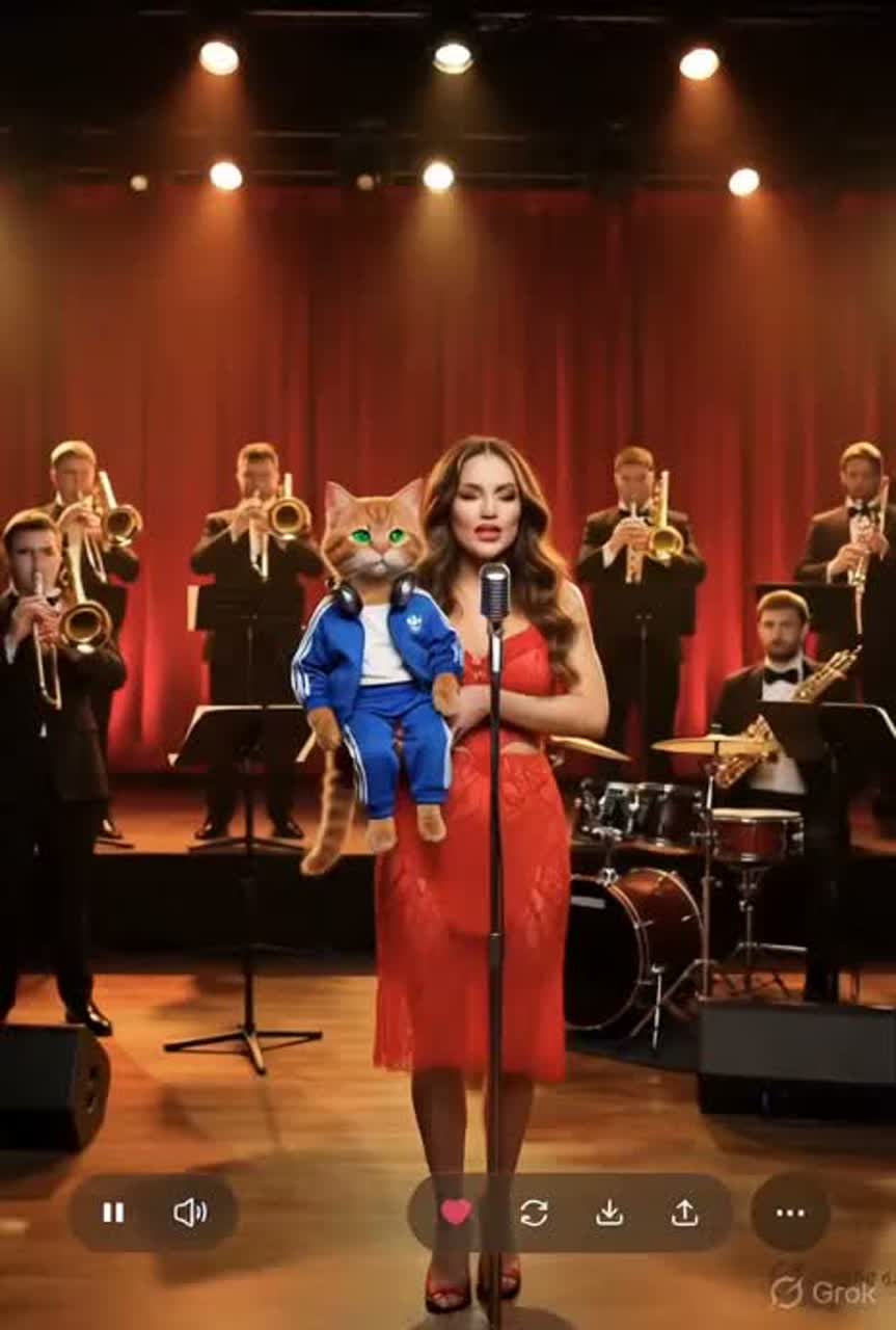Big band, acid jazz, loud female vocals and she is being stern and spanking a naughty kitty cat! Throughout the song I want “cat purrrrs” and meows