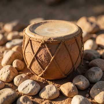 A cinematic neolithic soundscape opens with hand drums and rhythmic cycles, featuring clacking bamboo and hollow log drums drenched in reverb, Ocarinas, pentatonic mouth harps, conch shells, and clay whistles intertwine, The midsection swells with nut-shell shakers, evolving ceramic drum grooves, and deep, resonant neolithic horn drones, climaxing in a textured, uplifting finale, Energetic, uplifting, adventurous, ‑electronic, ‑modern