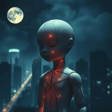 rock, Hybrid J-pop ballad: fragile female vocals over moody breakbeat and deep bass, centered on an Am–F7 progression, Intro builds with distant piano motifs and airy pads; verses stay intimate with brushed percussion and atmospheric strings, Chorus swells into orchestral pop—wide string beds, bell textures, and layered harmonies—then pull back to sparse, glitchy electronica in the bridge, Final chorus adds distorted guitar swells and doubled vocals for a defiant lift while keeping the tone haunting and melancholic, orchestral, alternative rock, vocal, j-pop, pop, ballad, slow, electronica, breakbeat