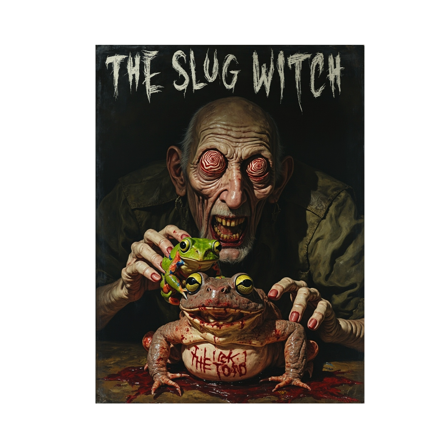 A pornogrind epic power blackened thrash with a long, intense intro—each instrument enters alone, ramping up tension, Detuned guitars, wild tempo shifts, and syncopation fuel chaotic death metal beatdowns, Guttural, screeching vocals dominate, interspersed with a swamp blues slide guitar break, The track erupts into raging blackened thrash djent riffs, capped by blistering guitar and pummeling stomp section, Each instrument claims spotlight with a solo, Abruptly, ethereal synths float in, seamlessly transitioning to a punishing deathcore finale with nasty grind vocal explosions