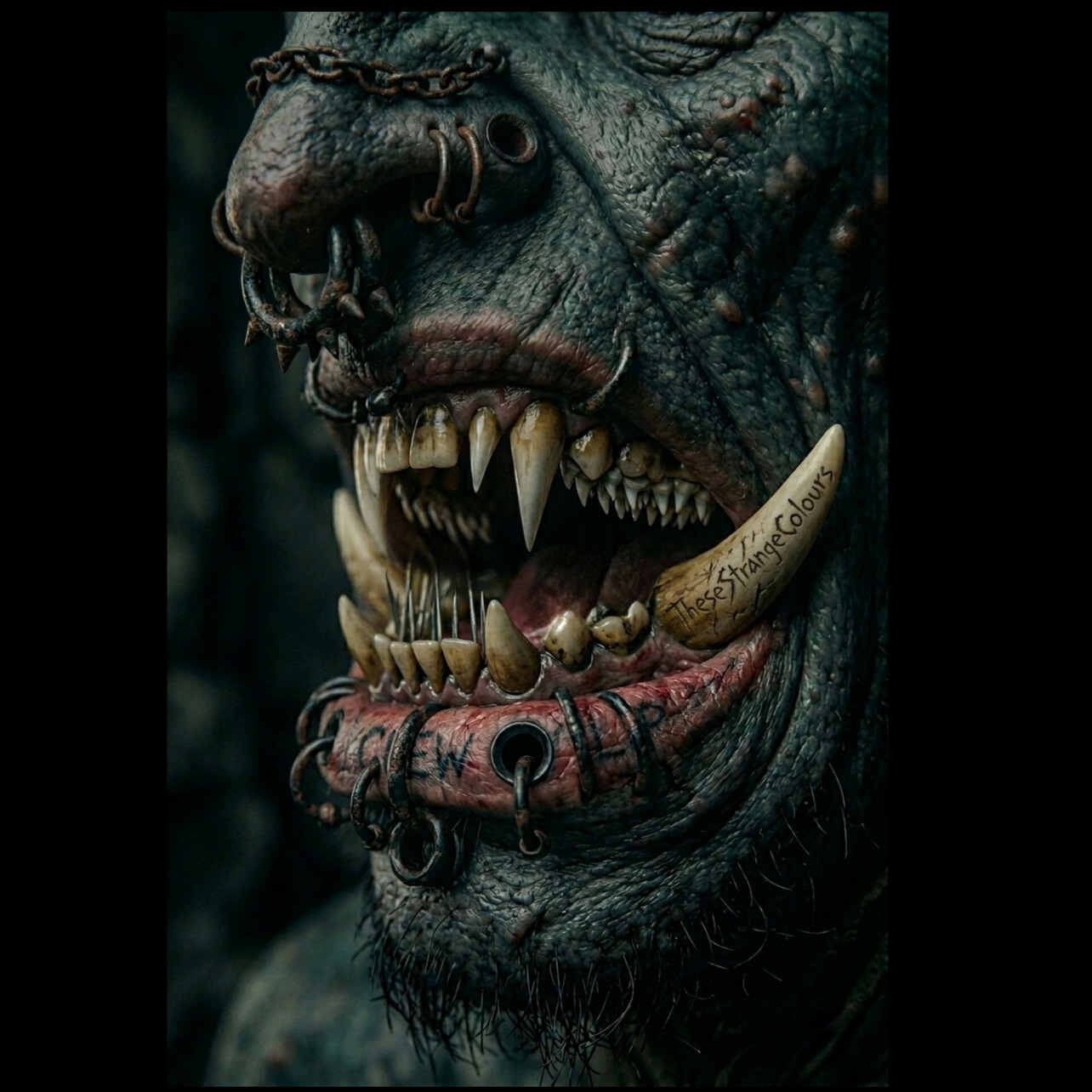 Launching with a furious barrage of blast beats and downtuned blackened thrash guitars played rapidly, this Scandinavian extreme metal track fuses grindcore groove, slam breakdowns, and troll metal quirkiness, Layered deeply gutteral screaming and howling, vocalist pig squeals, the vocalist is fast and rapid fire, guttural extreme grindcore gorecore vocal assaults drive relentless, chaotic aggression throughout, Rapid fire dynamic incredible drumming, Really fast and nasty rapid fire tempo, 180bpm