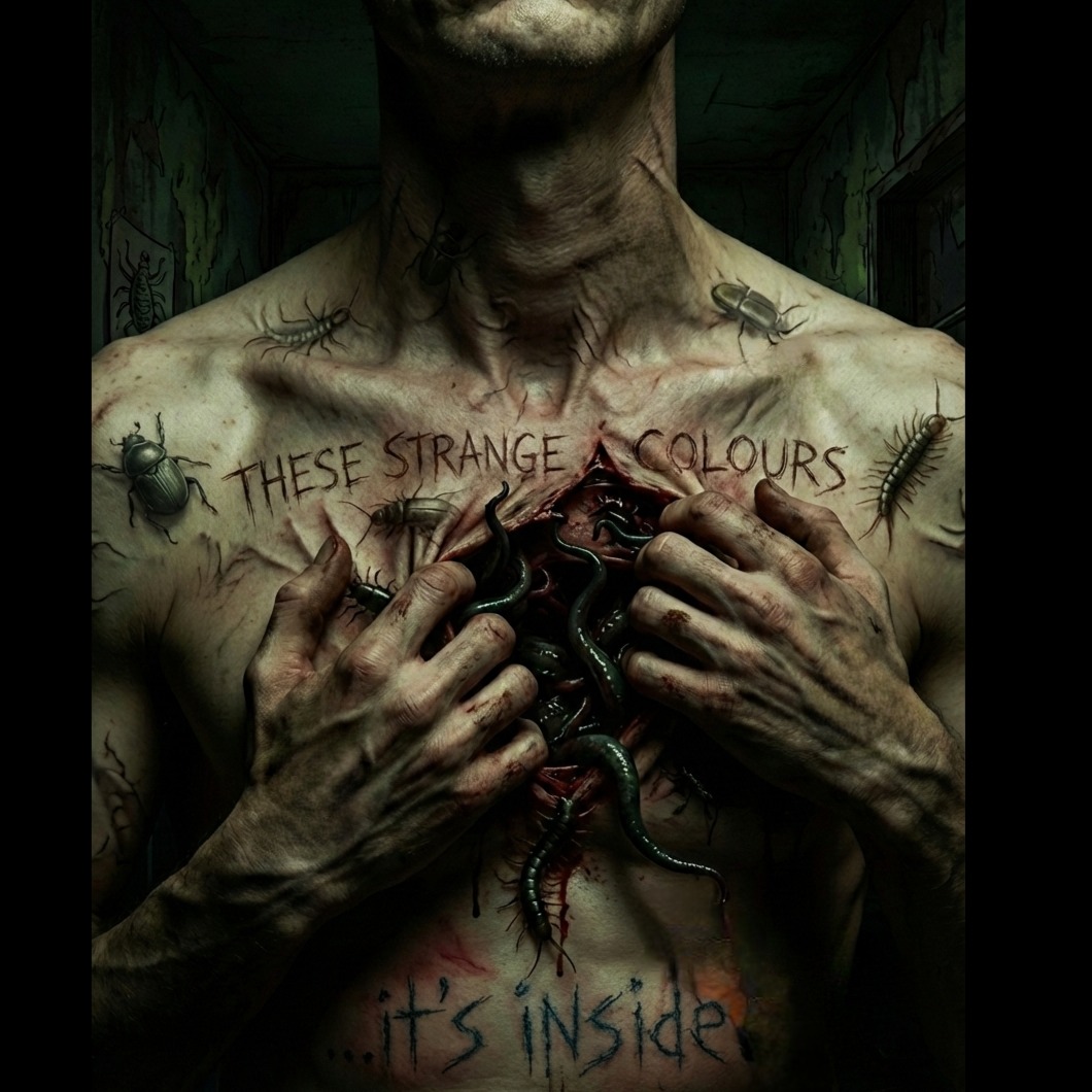 Buzzing tremolo riffs blast down and drop into technicaldeath core groove slam, like insects debating their own existence in a decaying skull, The bass is low and relentless dropping in and put of groove headbanding riffs, The incredible dynamic drums interrplay with riffs and culminating in melodic rhythms, like swarms shifting direction at once, This is grindcore sgroove slam, grotesque yet strangely contemplative, where dissonant patterns reflect both the futility of wings against glass and the terrifying persistence of decay given voice, The bass performs a strange solo that seems to lose interest as the song ends, the bass solo tailsmoff to silence, leaving a resonant hum