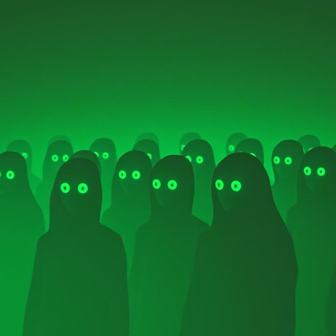 Experimental 3/4 with triplet pulses inspired by Pulsy’s eerie, floating BGM, Electro-acoustic glitch textures and avant-garde jazzcore weave with piercing chiptune arpeggios, Ghost snares slip behind airy, ethereal vocals while granular piano and marimba fragments shimmer like scattered green-eyed sparks, delicate yet menacing, Dissonant harmonies flicker unpredictably, echoing envy and obsession wrapped in a soft, tender glow, Sub-bass sweeps, reversed pads, and bitcrushed textures fold the space into dreamlike tension, Occasional silence stretches like held breaths, amplifying fragile anticipation, Whispered, chopped, granular vocals float, scattering like luminous green points across the dark, Chiptune stabs and bleeps inject jittery, lethal energy without breaking the delicate atmosphere, Glitch, granular, and reverb layers merge organic and electronic realms, evoking a jealous gaze silently reaching toward you