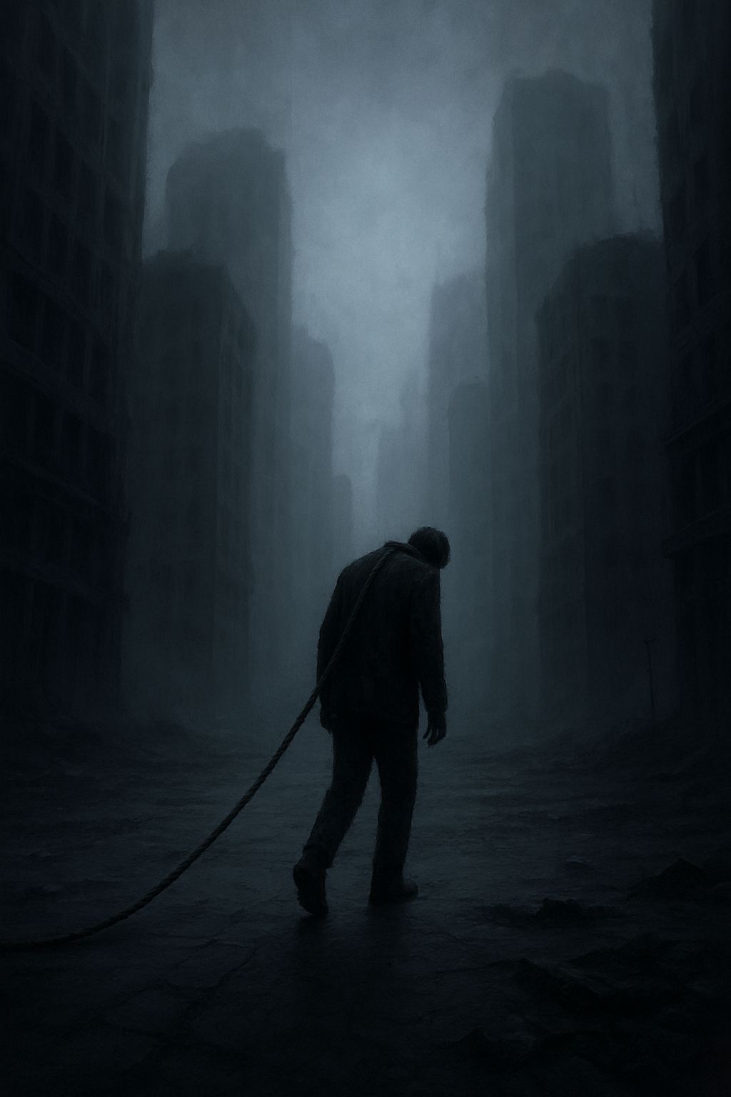 Dark Abyssal Shoegaze × Post-Classical Rock × Melancholic Lo‑Fi × Spoken Whisper Vocal, immersive dense textures, swirling reverb, distorted and detuned guitar-like synths, ethereal pads, piano and string layers for drama, subtle glitchy elements, fragile and intimate voice, Slow tempo (BPM 60–70), deep sub-bass like a heartbeat, muted and resonant low frequencies, sparse percussion felt more than heard, dynamic crescendos for emotional impact, Whispery, humanized vocal with soft pitch wobble and breath, Mood: guilt, despair, inner torment, existential weight, hopelessness, fragile humanity, Concept: overwhelming personal guilt and despair, heart stripped by others’ happiness, collapse of hope, surviving while feeling undeserving, Imagery of heart pierced with stakes of sin, crushing weight of self-reproach, turning suffering into immersive, dark, dense, and abyssal soundscapes with post-classical rock drama, not action