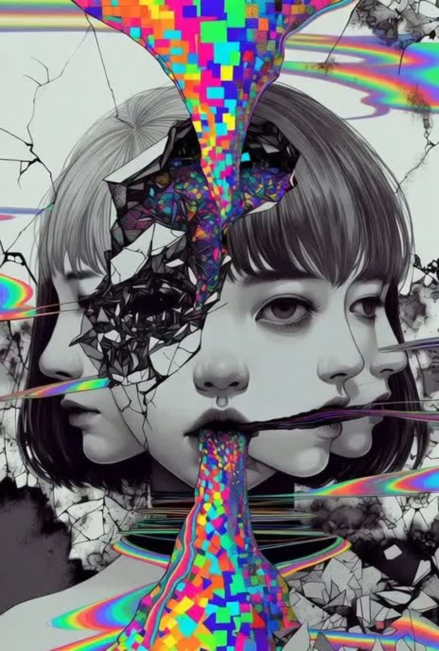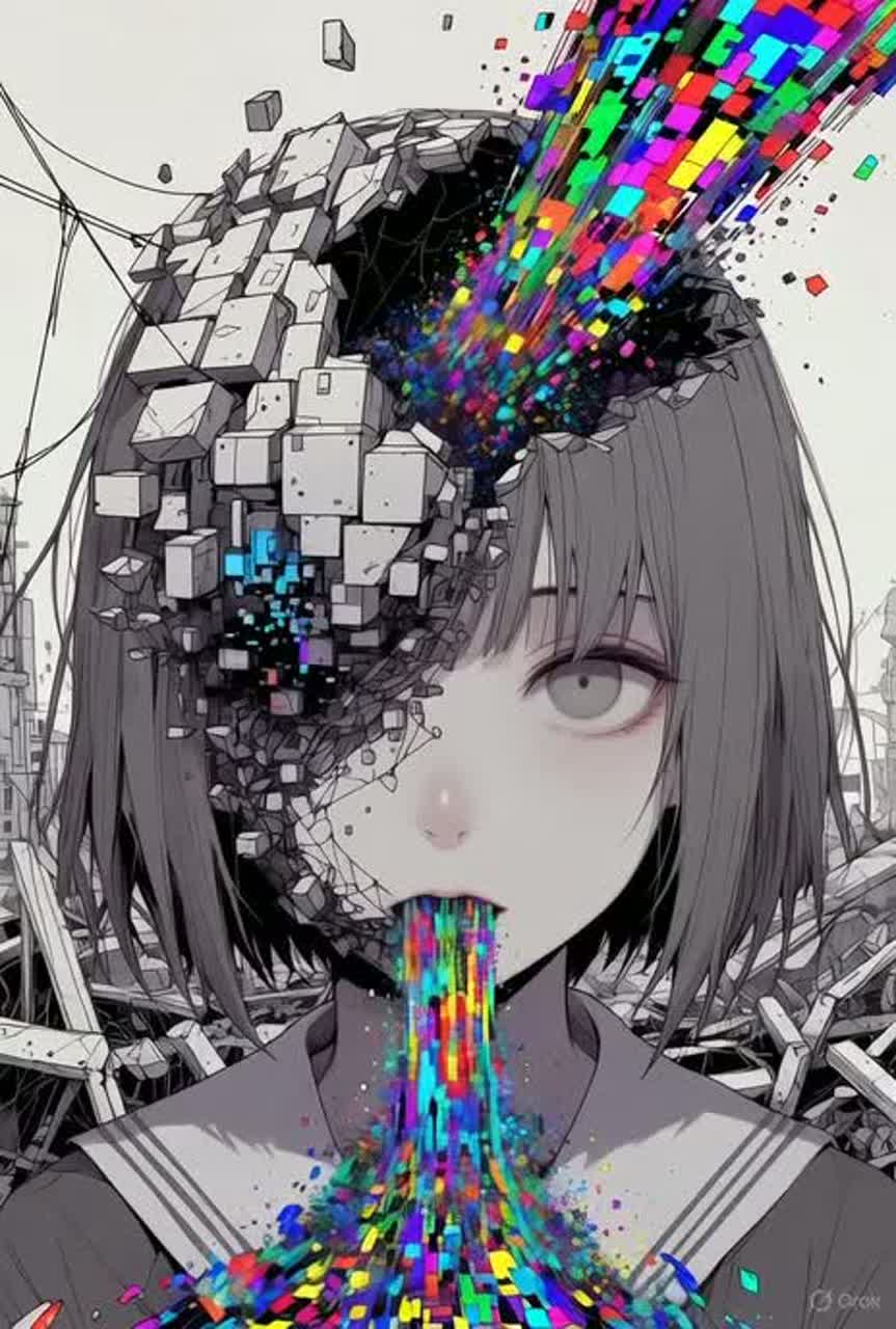 Glitch-art experimental pop track, inspired by imoutoid and emotional memory decay, Use distorted whisper vocals, reversed fragments, stuttered effects, data loss sonics, and broken melody loops, Vocal should feel like it's being deleted or corrupted, Blend emotional fragility with technical failure