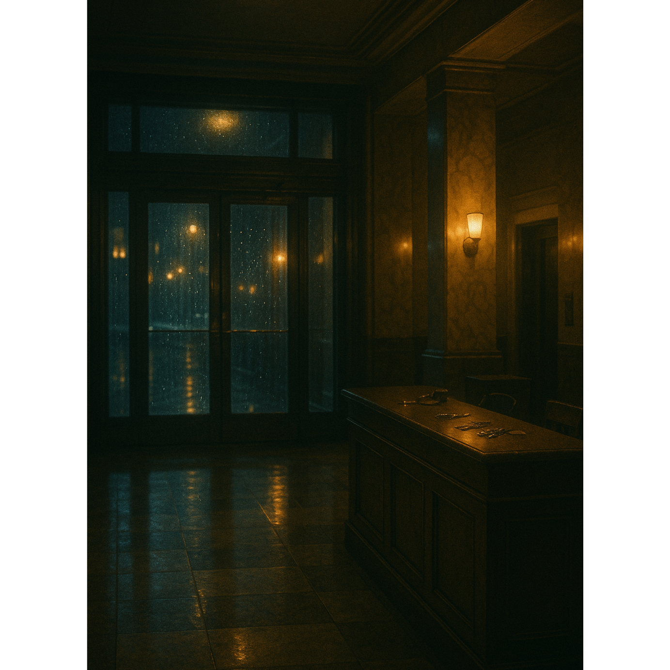 Cinematic ambient ballad (74 BPM, key D major), Male baritone vocal of the Building Himself, intimate and reflective, Warm electric piano, soft analog pads, sub-bass heartbeat, and rain ambience, Deep room reverb with tape hiss and gentle decay, the Building’s voice as a weary sentient presence, Cohesive with The Building at Number 7 sound world