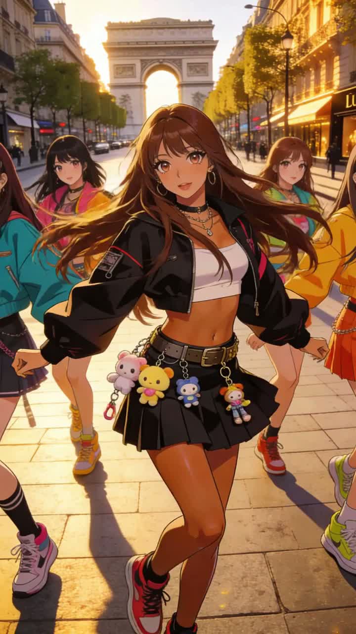 A liquid drum and bass foundation merges with jungle breaks, big beat impact and euphoric acid house energy, anchored by a driving hard snare, Energetic hand claps punctuate digital glitches and acid house squelches, Britpop/punk-inspired, raw, rebellious vocals ride a groovy, French touch-infused EDM landscape, with a sharp, catchy bass and hook, Experimentation thrives in abrupt drops and layered textures, blending girl group harmonies with edgy, modern electronic flair, The beat continues during the bridge