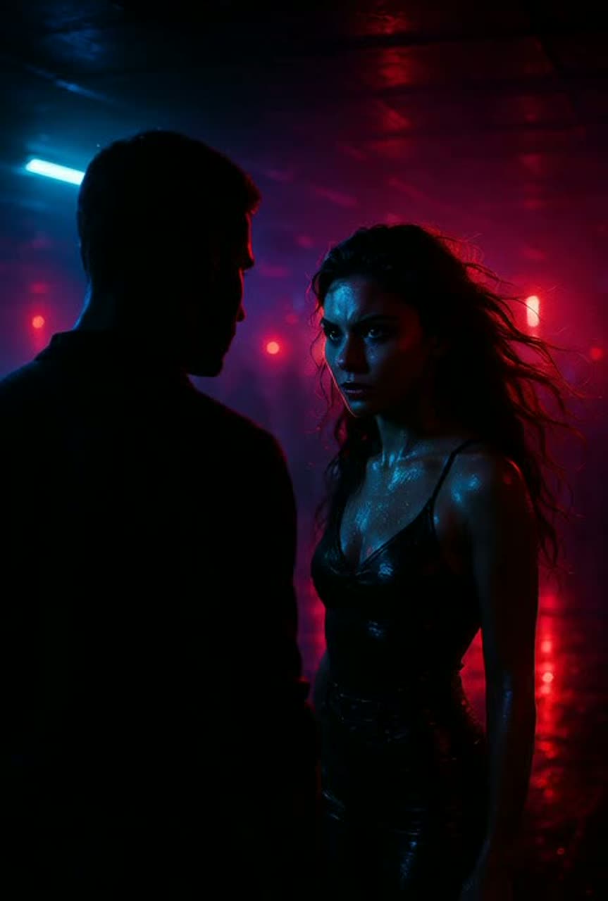 MABG signature deep house + dirty pop fusion: líneas de bajo profundas y saturadas, kick fuerte a cuatro tiempos, sidechain agresivo, plucks filtrados, pads oscuros, texturas metálicas, percusión digital afilada, atmósfera clubbing nocturna, tensión constante, builds intensos y drops contundentes, Ambiente sensual, intenso, oscuro y con energía de pista subterránea, Lead vocal male voice (MABG): tono profundo, seguro, ligeramente rasposo, con actitud oscura y dirty pop; fraseo rítmico y preciso, presencia dominante en frecuencias medias, Guest female voice: brillante, expresiva, con leve resonancia nasal y raspado cálido, Vibrato rápido y reluciente, melismas cortos, adornos vocales de inspiración medio-oriental, articulación juguetona y pequeñas inflexiones tipo yodel al final de frases, Entrega emocional con energía latina, sensual y agresiva, Ambas voces integradas en un entorno deep house, con contrastes dinámicos y cortes precisos para el drop