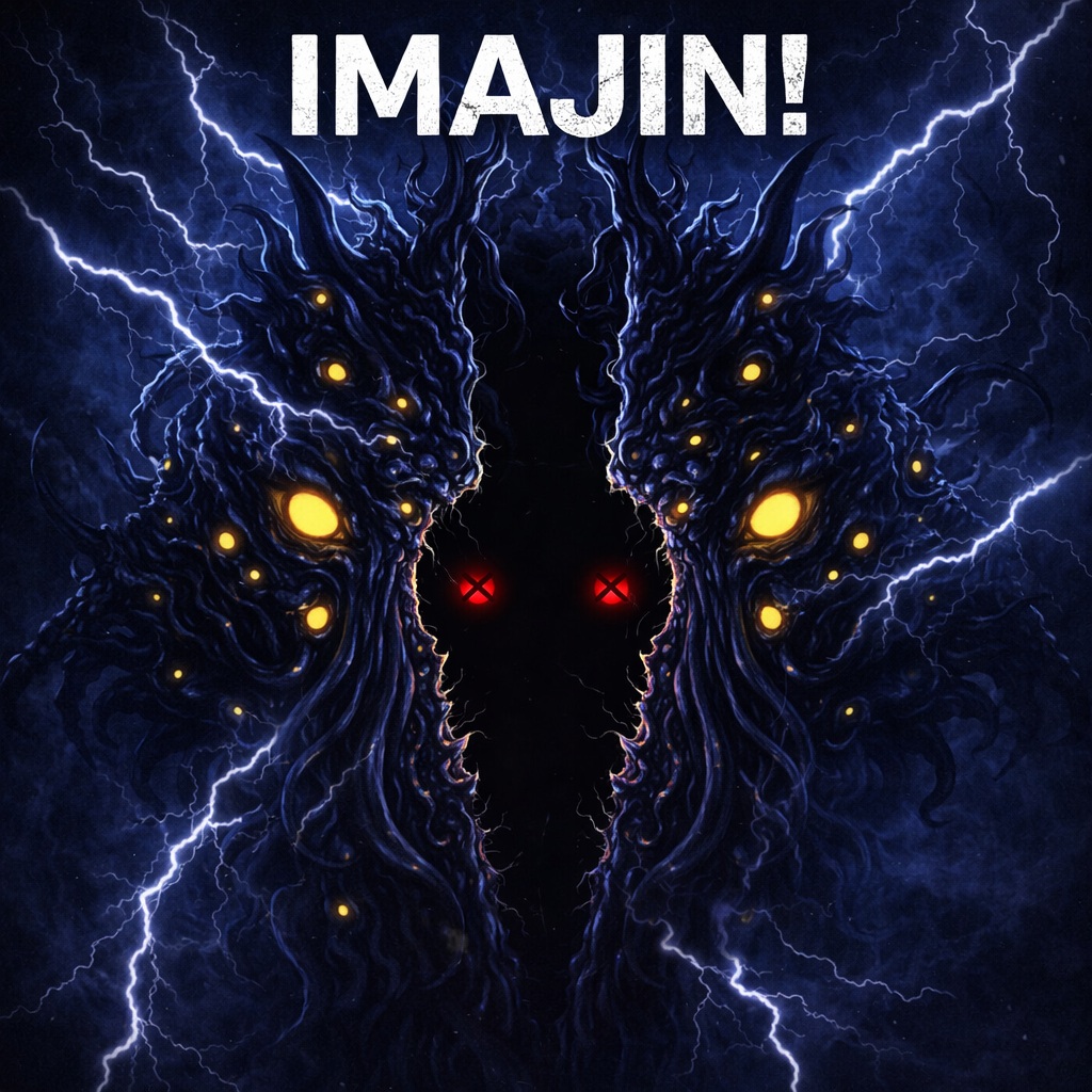 Electric filter on voice, two voices, diss track, battle song, rap-esque, god voice, ft, Majin