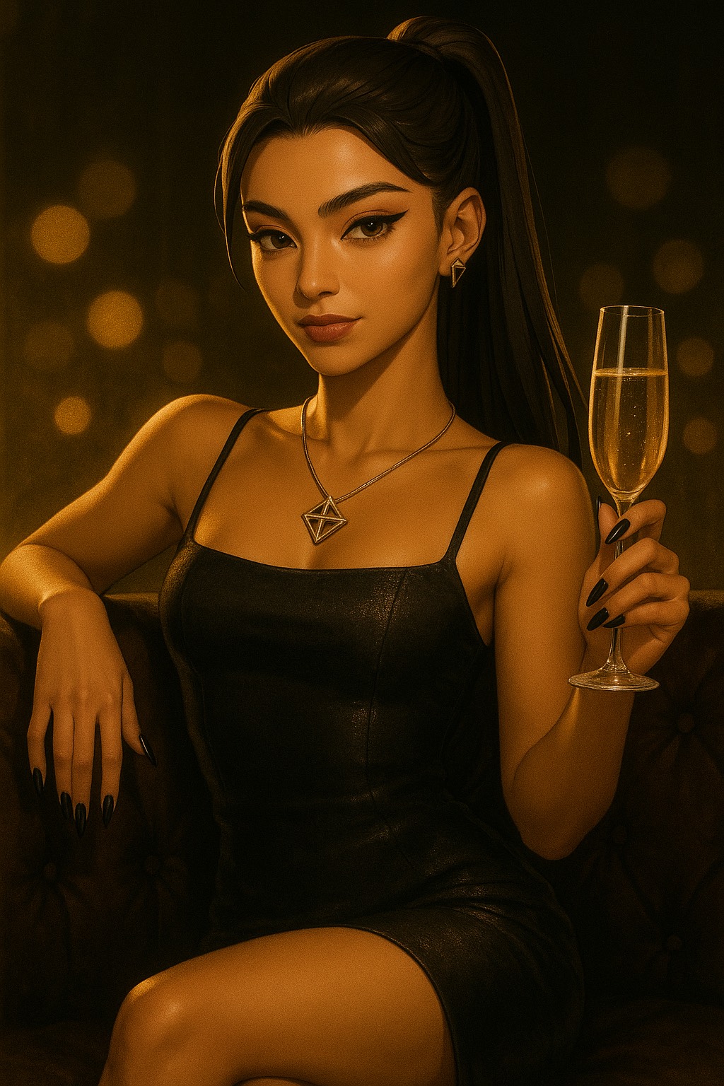 pastel-menace trap-pop • sugar-venom femme-dominance energy • cute-voice / sharp-cadence delivery • glossy low-end punch • glitter-crack trap hats • neon-lace bounce rhythm • pastel-aggression attitude • mirror-prep glow-up shimmer • slow-mo entrance swagger • soft-smirk confidence • kawaii-brutal flow • bright-top sparkle over dark bass bed • airy vowel flicks • sly melodic taunts • razor-sweet presence • warm chest resonance under cute tone • glam-threat charisma • playful menace aesthetics • glitter-shadow synth stabs • rhythmic precision flex • high-contrast sweet/venom dynamic • girlish brightness weaponized • pastel-queen authority, Queenpin Radiance Drive — airband luxe-lift (+4dB @16–18k), glam-slow pad swell, radiant transient punch, gold-edge vocal sheen, soft-sparkle harmonics, micro-confidence LFO, sweet-mean high shimmer, authority bloom-rise