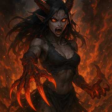 A roaring blast of melodic death metal rooted in the icy-cold precision of Scandinavian riffcraft and the fiery neoclassical chaos of early extreme metal, The song blends dual-lead harmonized guitars, fast tremolo runs, and crushing palm-muted chugs with machine-gun double-kicks and thunderous tom rolls, A dark atmospheric underlayer of haunting synth pads and choral embers reinforces the infernal theme, Vocals shift between deep, infernal growls, mid-range rasp screams, and occasional ethereal clean backing harmonies for contrast, The solo section erupts into a blazing, ornate shred reminiscent of the most frantic “frost-kissed” northern metal virtuosos, Lyrically driven by Ifrit’s betrayal, wrath, and divine flame, the track carries the storytelling spirit of mythic vengeance, mixing cinematic hellfire imagery with relentless rhythmic assault, The overall feel is epic, aggressive, and emotionally scorched—an inferno crowned in melodic despair