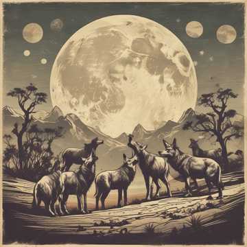 didgeridoo, wolf howl, alpine, native american, predatory tribal minimal simple ancient minimal instrument, wolf animal, native indian warriors mimicking wolf sounds and animal owl, monkey, snake