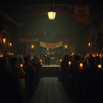 medieval tavern folk, acoustic guitar and fiddle, hand drum stomp rhythm, rowdy pub singalong chorus, humorous storytelling verses, crowd vocals shouting “They Must Be Stupid”