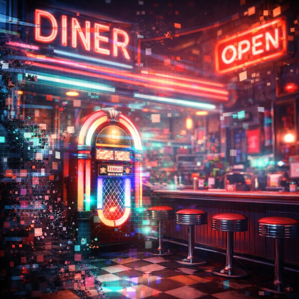 Classic surf rock instrumental in the style of The Ventures, tempo 145 BPM, bright clean lead guitar with very deep spring reverb, Tremolo Picking, Slide down, strong 60s surf rock feel, fast single-note melodic lines, heavy palm-muted picking, clear major key melodies, guitar is the absolute core of the track and always in front, Subtle modern digital elements in the background: light breakbeat drums, minimal glitch textures, restrained industrial bass synth, occasional stop-and-go breaks, digital effects are secondary and atmospheric, supporting but never overpowering the surf guitar, no vocals