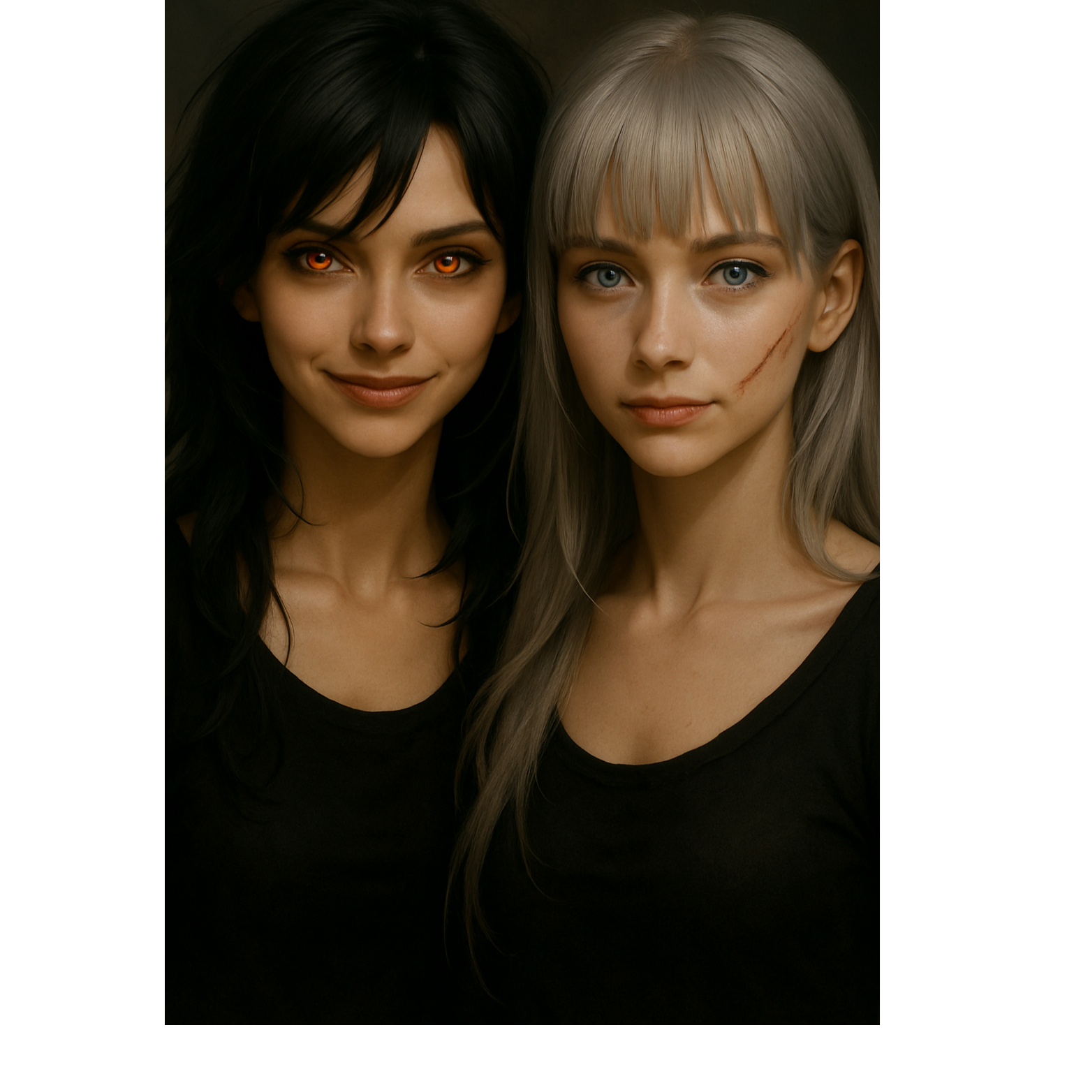 Dark cinematic trap fused with haunting noir, 82 BPM, F# minor, Slow seductive female lead vocals, deep sultry tone, layered harmonies, whispered undertones, and subtle breathing effects, Verses: close-mic, hypnotic tension, dark intimate delivery, supported by low rumbling sub-bass, distant reverberated piano accents, and sharp ticking hi-hats, Hooks: wide atmospheric soundscape with haunting ethereal reverb, multi-layered vocal harmonies, deep sustained basslines, and distorted textures, Mood: perfidious, obsessive, predatory, elegant but raw, Production: immersive, wide stereo, dynamic vocal layering, heavy reverb tails, dark cinematic ambience, Mastering: high detail, deep low-end, razor-sharp mids, haunting atmospheric clarity