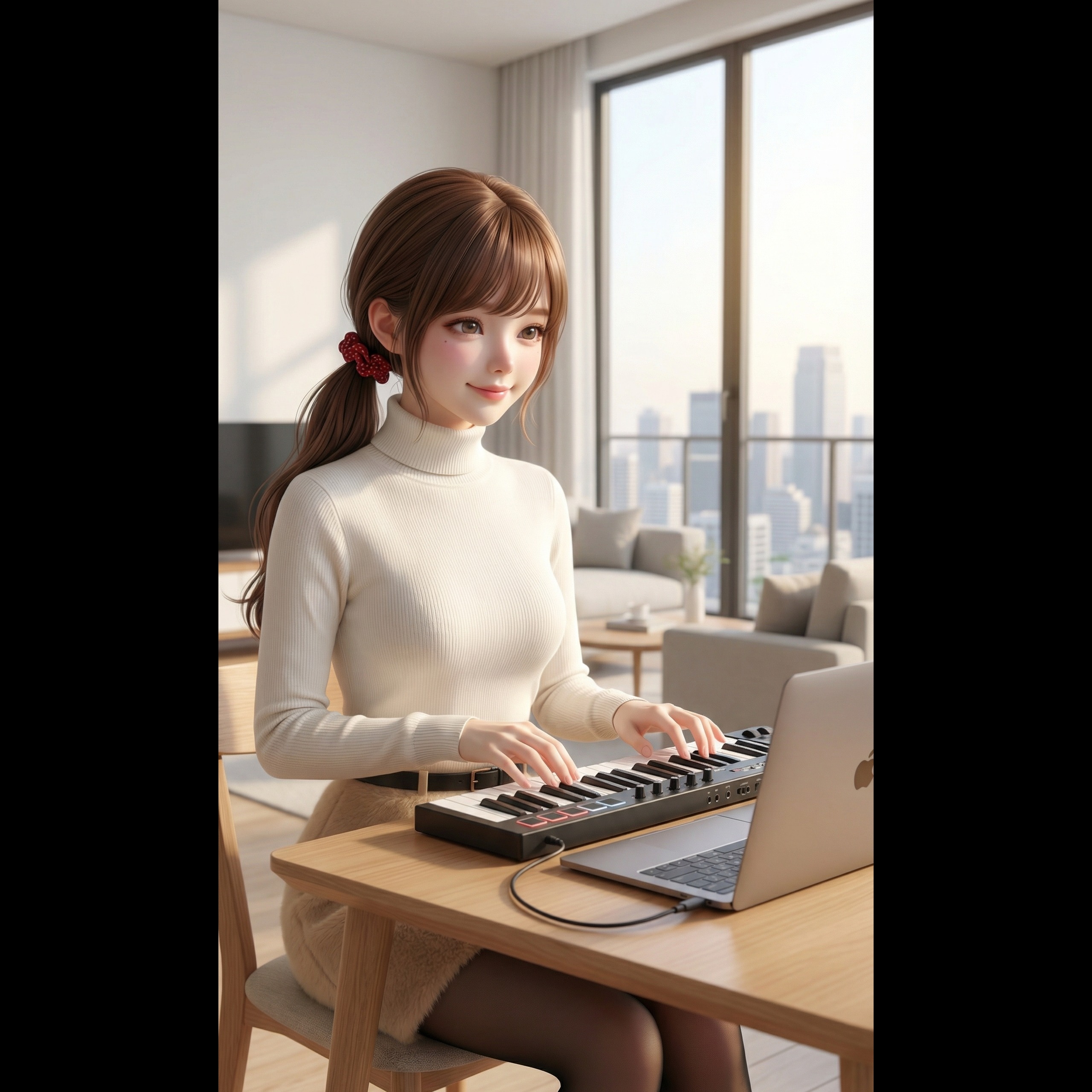 Modern City Pop, J-Pop 90s vibe, Bright Synthesizer, Funky Guitar Cutting, Groovy Bass, Kawaii Cute Female Vocals, Up-tempo but Sentimental, Urban atmosphere