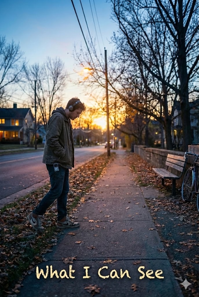 Male Vocal, Early-2000s Alternative Pop-Rock Ballad, Mid-Slow Tempo (72–78 BPM), Minor Key, Intimate, low-register male verses with a soft, restrained delivery; slightly husky tone, Emotional, melodic chorus that opens up gradually, not anthemic, more inward than explosive, Clean electric guitar arpeggios as the core texture, warm supportive bass, restrained live-band drums with light cymbal work, Subtle dynamic build across the song, fuller final chorus with light vocal harmonies and increased guitar presence, Raw, honest, slightly gritty production — no glossy pop polish, Mood is introspective, lonely, quietly warm, like walking home alone at dusk with headphones on