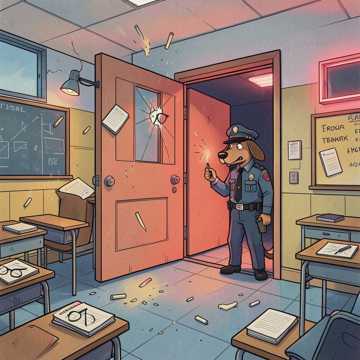 rap, Playful Russian schoolyard hip-hop, bouncy boom-bap drums with a rubbery bassline, Verses packed and conversational, kids trading lines; hook opens into a chant with gang vocals and stomping claps, Light synth bells and record-stop FX punctuate punchlines, then drop back for a sparse, head-nod bridge, Male vocals, energetic and cheeky, like a lunch break cipher in a gym hall