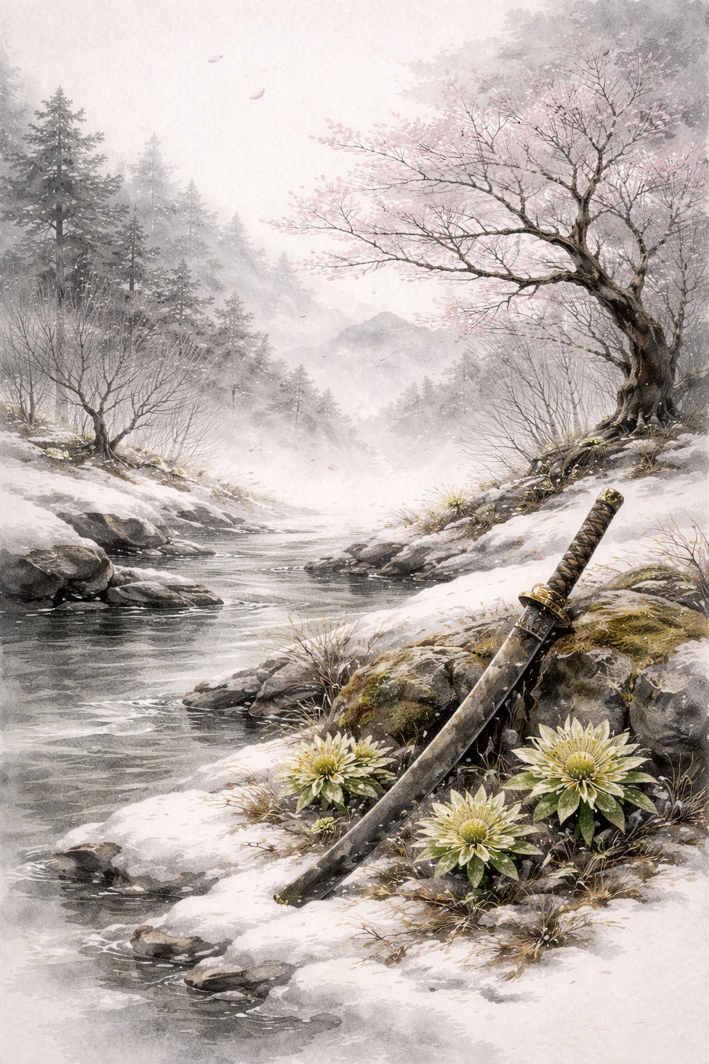 Japanese style song with a strong sense of seasonal transition from late winter to early spring, Slow to mid-slow tempo, gentle but emotionally deep, Traditional Japanese atmosphere blended with subtle modern softness, Melancholic and tender mood, expressing quiet longing and unspoken love, Use delicate acoustic instruments such as koto, shamisen, shakuhachi, and soft piano, with light strings supporting the harmony, Minimal percussion, slow breathing rhythm like cold air easing into warmth, Melody should flow calmly, slightly wavering, evoking restraint and patience, Vocal is soft and expressive, clear Japanese pronunciation, intimate and close, singing as if confiding a secret, No brightness or cheerfulness, focus on bittersweet beauty, fragile hope, and the moment where winter slowly gives way to spring, Spacious arrangement with silence and reverb, emphasizing loneliness, tenderness, and quiet emotional resolve