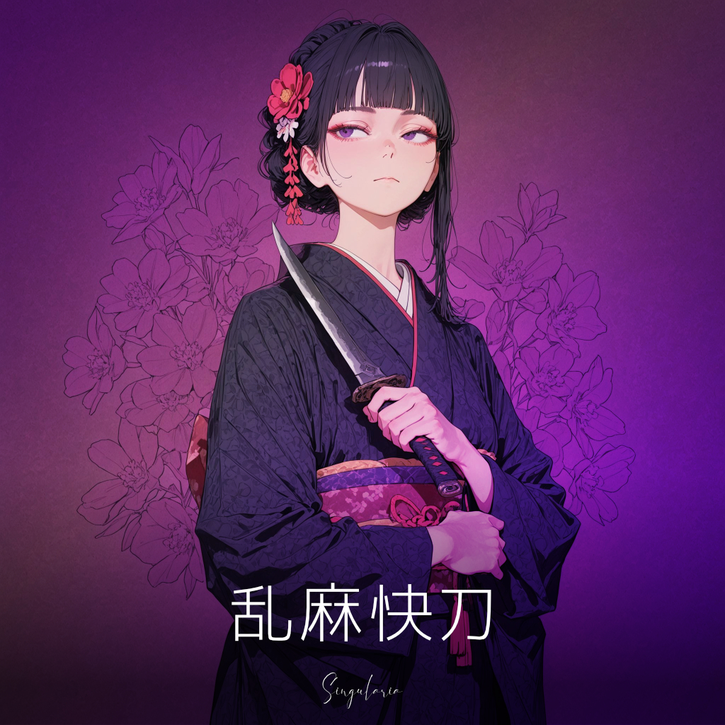 A dark, playful, and hooky fusion of Plunderphonics × Big Beat × Breakbeats × Future Funk × Acid Jazz × Turntablism × Avant-Garde Bass House and Dark Future Bass for depth, Tempo 128 BPM, Punchy kicks, crisp snares, glitchy and chopped samples, growling sub-bass, jazzy electric piano, and hyperactive turntable scratches create chaotic, agile motion, Female vocals, subtly cute yet languid, whisper with a hint of sensitivity, flowing between Japanese and English, Floating ad-lib rap passages flicker unpredictably, bending rhythm and space, evoking the agility and presence of a mimetic “模造刀”, Theme: a nimble, blade-like presence slicing through light and shadow, scattering ephemeral fragments and tracing arcs in the air, Style: immersive, precise, fleeting, hypnotic, surreal, Silence, glitches, and spectral echoes manipulate perception, Elegance and chaos collide, leaving listeners suspended in a brain-twisting swirl of sound