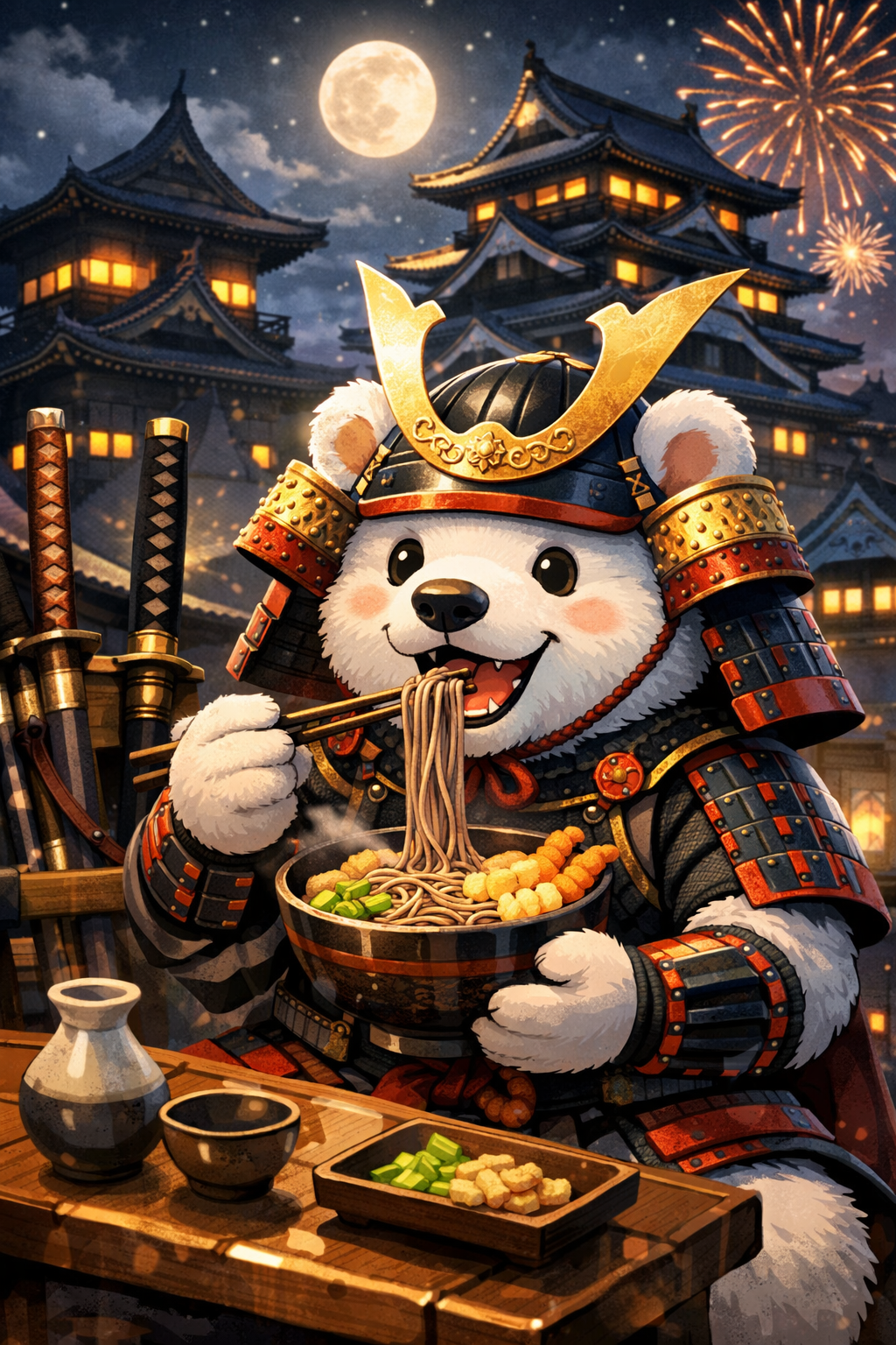 A super high-tempo, energetic background track designed exclusively for male Kansai-dialect spoken food commentary with absolutely no singing, built around fast, lively beats, bustling percussive rhythms that feel like end-of-year movement, subtle steam-like breath textures suggesting hot food, and a cheerful TV-style food review vibe, avoiding heavy or sharp traditional effects, keeping melodies minimal and supportive so the hyper-exaggerated, fast-talking narration dominates, emphasizing humor, momentum, and New Year’s Eve excitement above all else