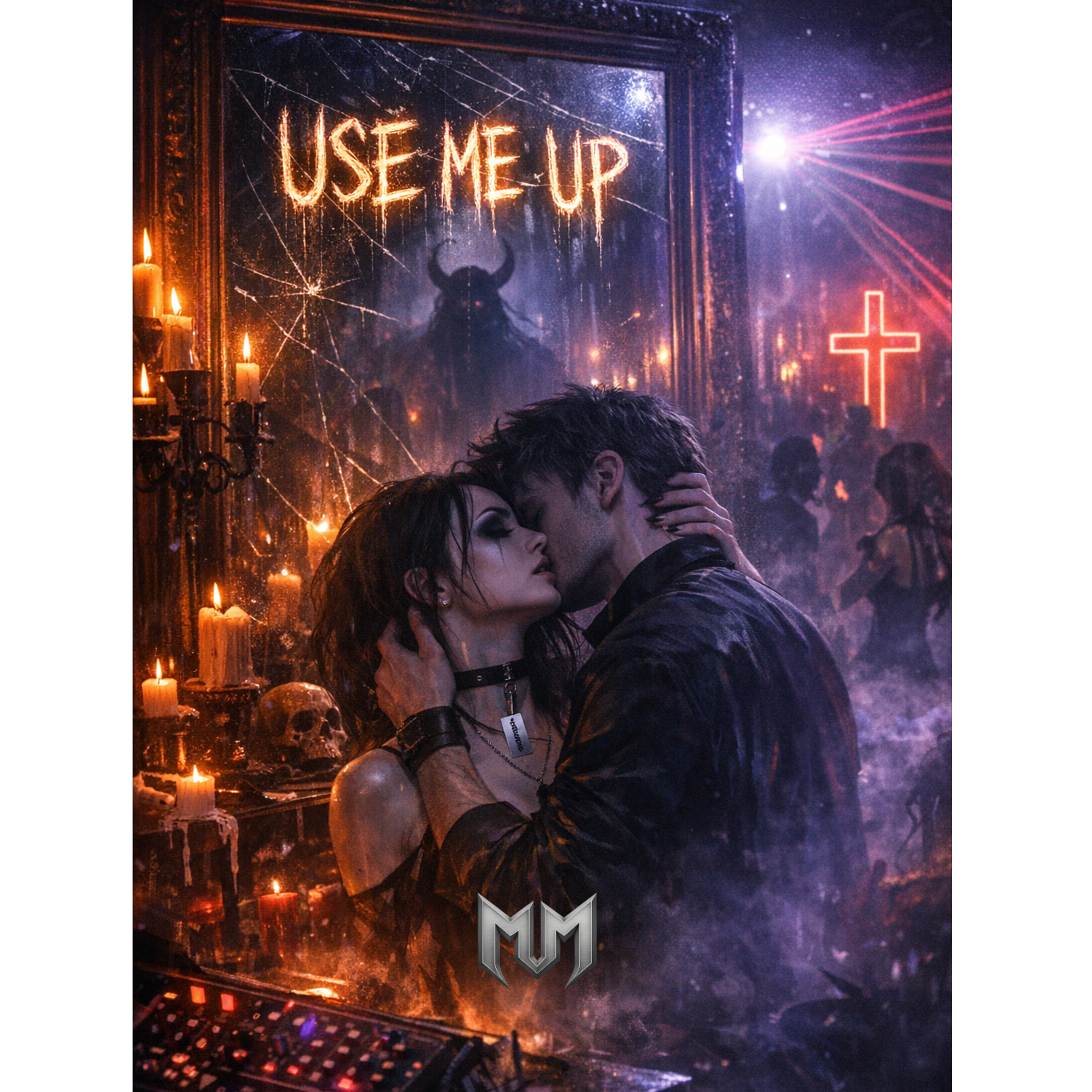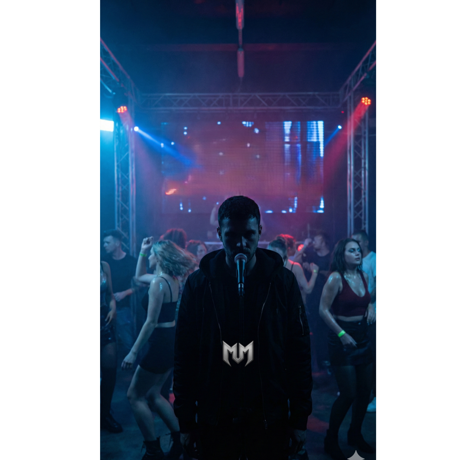 [Description and structure: The track opens with a dark, pulsing bassline and a lonely, high-pitched synth arpeggio, The vocals are delivered in a breathy, yearning baritone with heavy reverb, The chorus explodes into a wall of sound with side-chained synth pads that "pump" with the kick drum, The mood is late-night, strobe-lit, smothering and obsessive, ]